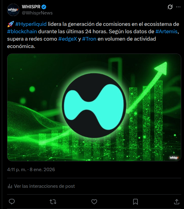 🚀 #Hyperliquid lidera las comisiones de la #blockchain.
