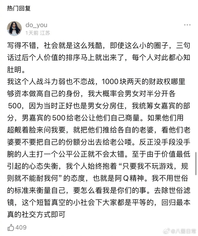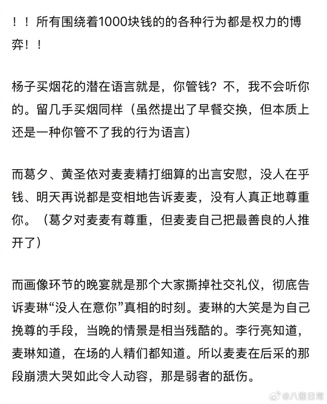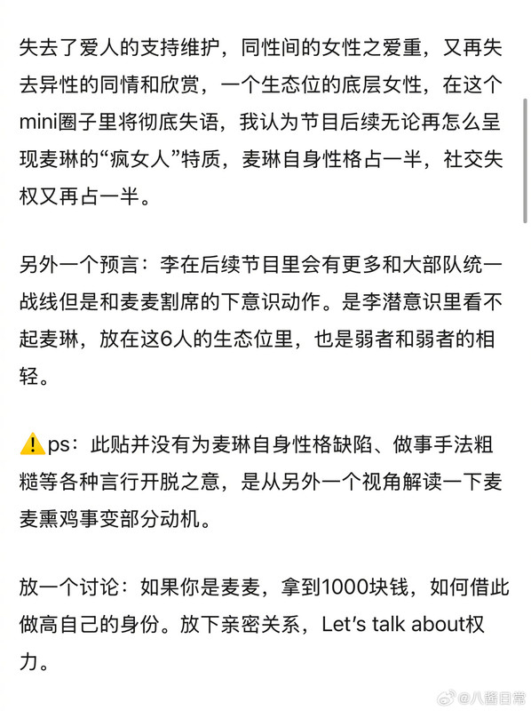 不过再见ai人这个节目有个好处是让我理解了为啥生活里这么多人讨厌我了 因为我性格和卖林挺像的 我估计肯定有很多我的同事同学们看到这个节目都会想到我了[允悲][允悲]因为我太表演型人格 外加很自恋老觉得男人们都喜欢我 外加很爱和其他女人雌竞 和其他男人雄竞 很争强好胜 外加还很脆弱容易破防 外加还很巨婴觉得别人都应该哄着我 反正buff叠满了[允悲][允悲][允悲]我估计我的很多同事同学们都会觉得卧槽这个麦0不就是她吗[允悲][允悲][允悲]