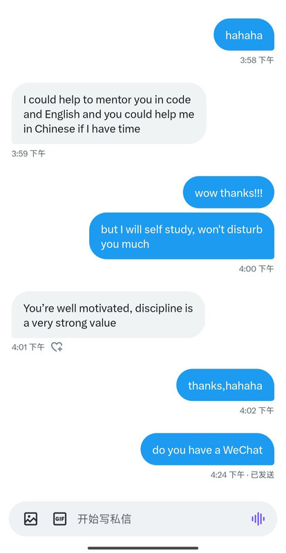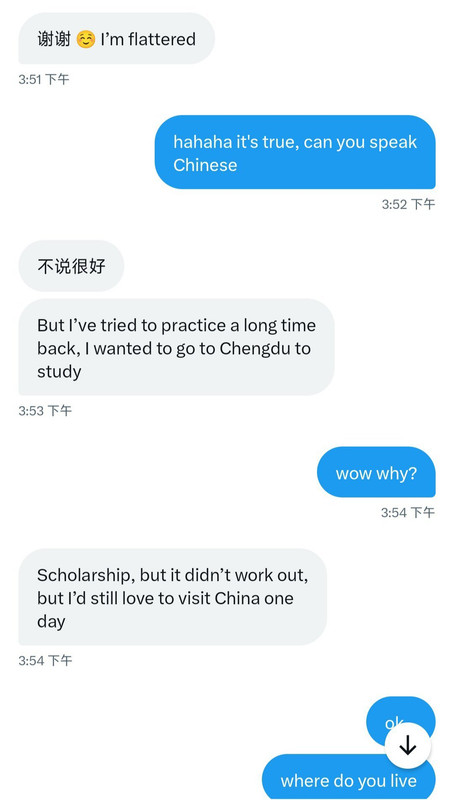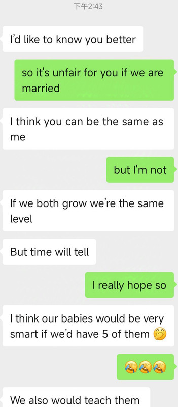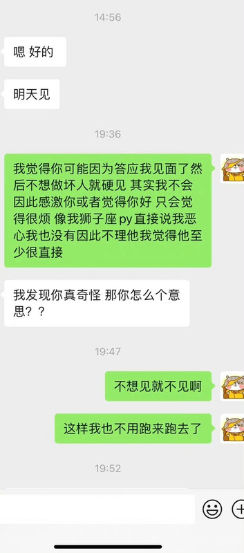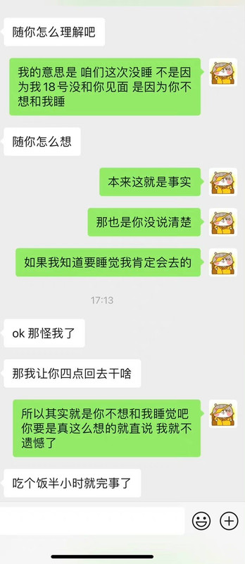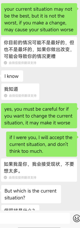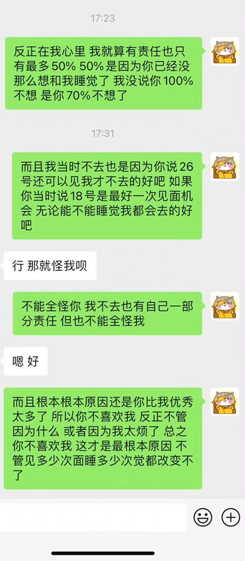 每次她询问我什么事情,我都老老实实告知。而我问她申请的情况是,她连国家都会模糊,更不要说学校,根本不可能告诉我。当时我已经连续感受到这个人的不真诚,但我还是秉持着对朋友的“宽容”。