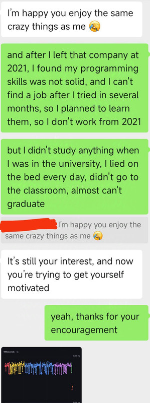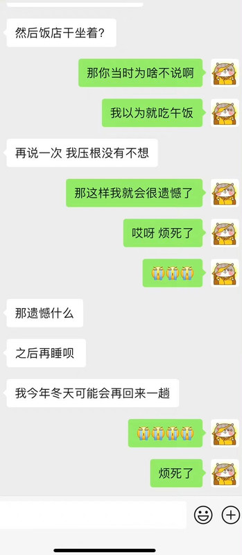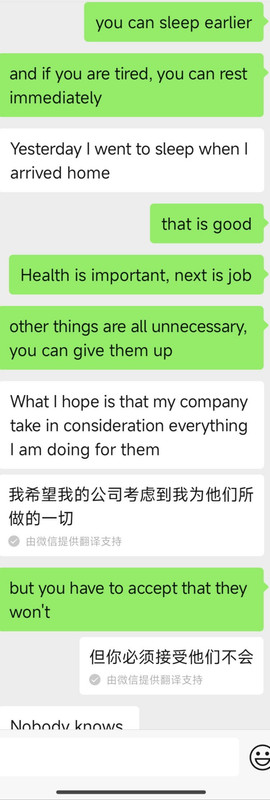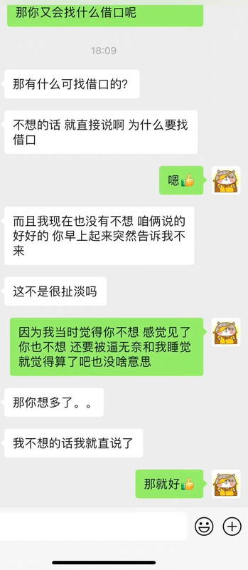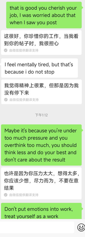 这个姨老是问我找没找到工作搞得我压力贼大 关键是我本来想着阳了这么多天都没有滋味 今天正在滋味呢 她一问我(图1)我感觉就没了 又印不起来了 虽然我知道她是为我好 但是别人如果没有主动求助就不要去帮忙啊 只会让人压力很大啊!!! 我突然觉得我另一个朋友(图2)挺好的(就是那个总是主动找我说话 但我基本不回复的朋友)因为那个朋友明知我失业两年了 但从来不问我 不会让我压力大 哪怕我说我没工作她也觉得无所谓 我就喜欢这种朋友[允悲]