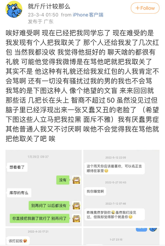 在看到她骂我的消息以后,我终于有勇气把她删了以及微博拉黑了。