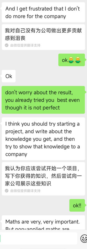 去年七月份,我偶然得知一个PhD申请位置空缺,有三个名额,因为在欧洲,所以我去问了一下她,那时候她已经有欧洲PhD口头Offer。没有想到她在得知我询问她的机会以后,表示她也要申请这个项目。因为很紧急,知道这个申请项目的人很少。