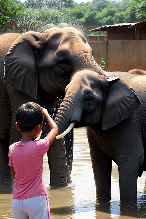 nostr:npub102ca8pnhy26vh2akepgr4vleyew65nuzug5val3sycslfe0wruwqzezyfp imagine an elephant spaying water on itself and children are washing it and laughing