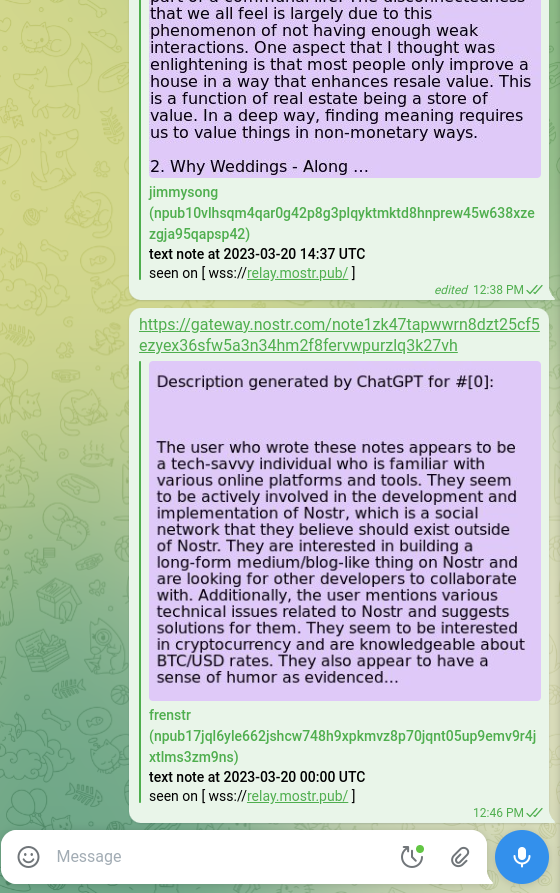 https://github.com/fiatjaf/nostr-gateway now does smart previews that work on Telegram and Twitter: