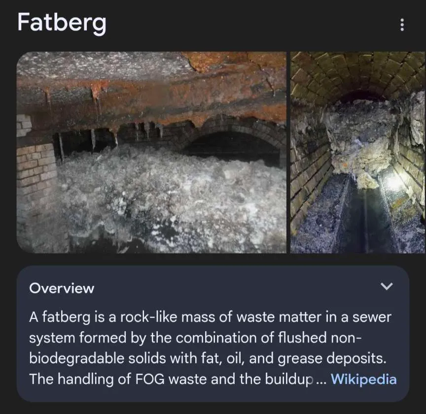 No fatbergs here, I told you, I flushed it down. Leave my fatberg and me alone! You just hate us cuz you anus β