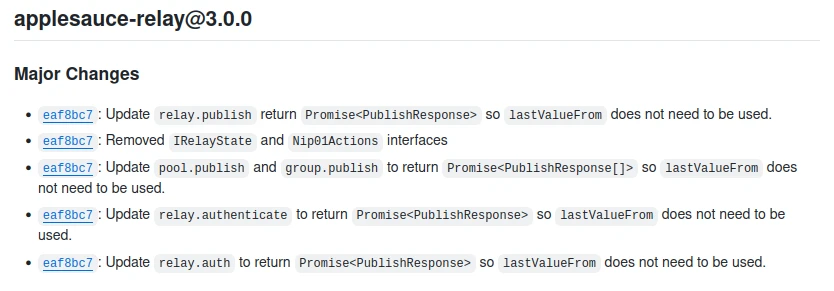 For anyone using the `applesauce-relay` package. there is a breaking change coming in v3. The `publish` and authentication methods will return a Promise instead of an Observable.