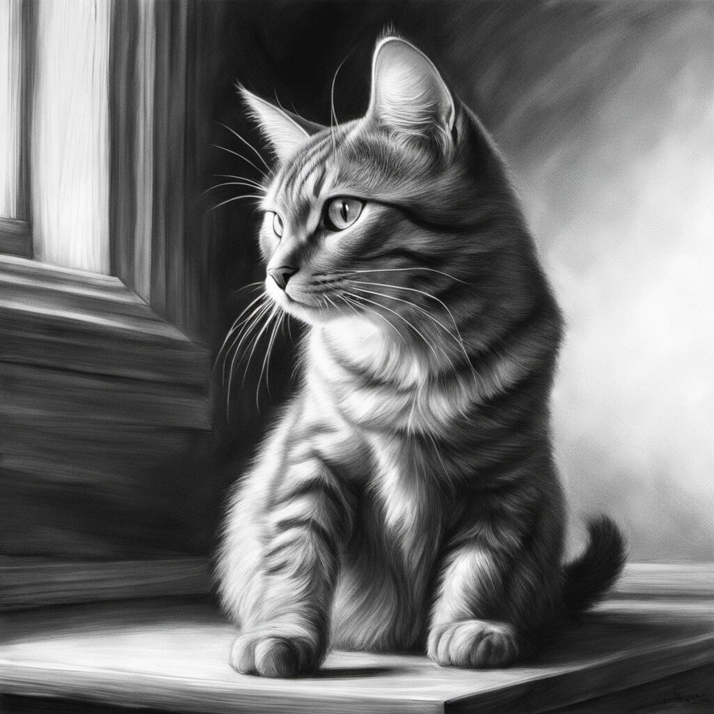 Prompt: a cat in hyperrealist pencil sketch style, black and white painting, fantasy art, photo realistic, dynamic lighting, artstation, poster, volumetric lighting, very detailed, 4k, da vinci style made with a charcoal pencil