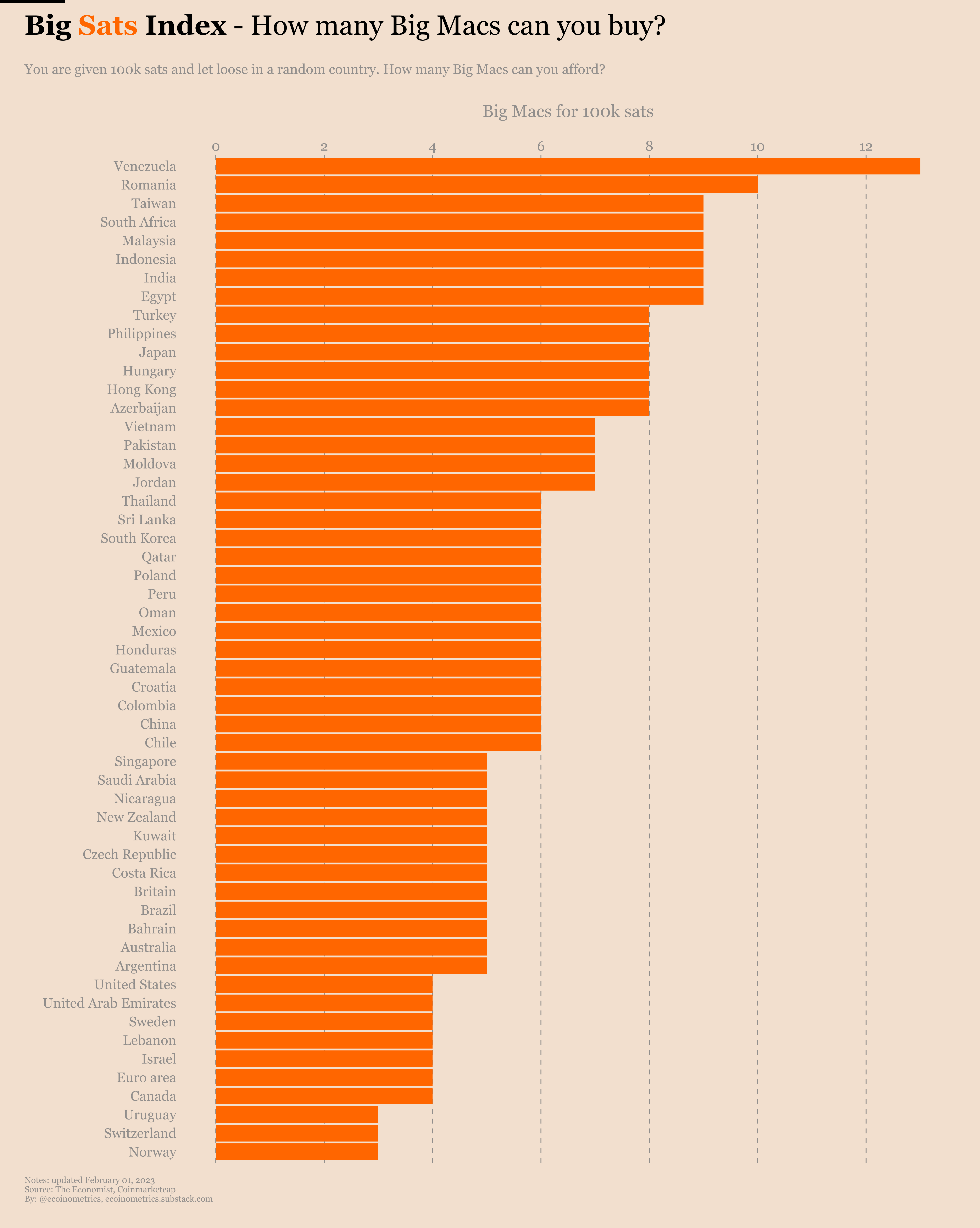 Here's an international sats/bigmac index, telling a lot about the relative price of goods.