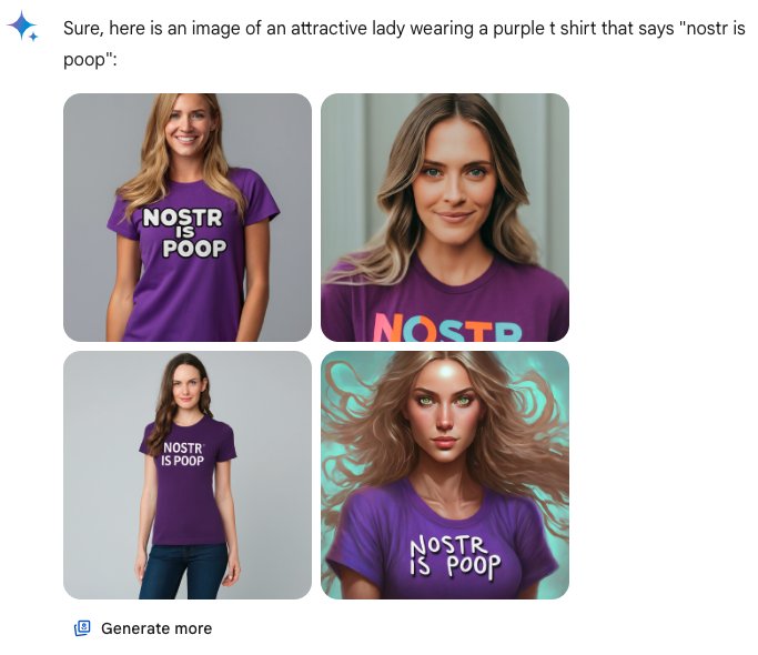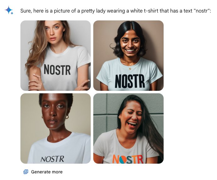 Apparently Google Gemini has a diversity filter built into it so it won't spit out white people unless you specifically ask for it. Even then I guess it takes a bit of finagling.