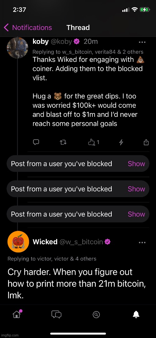 More sats to Wicked for adding to my blocked list.