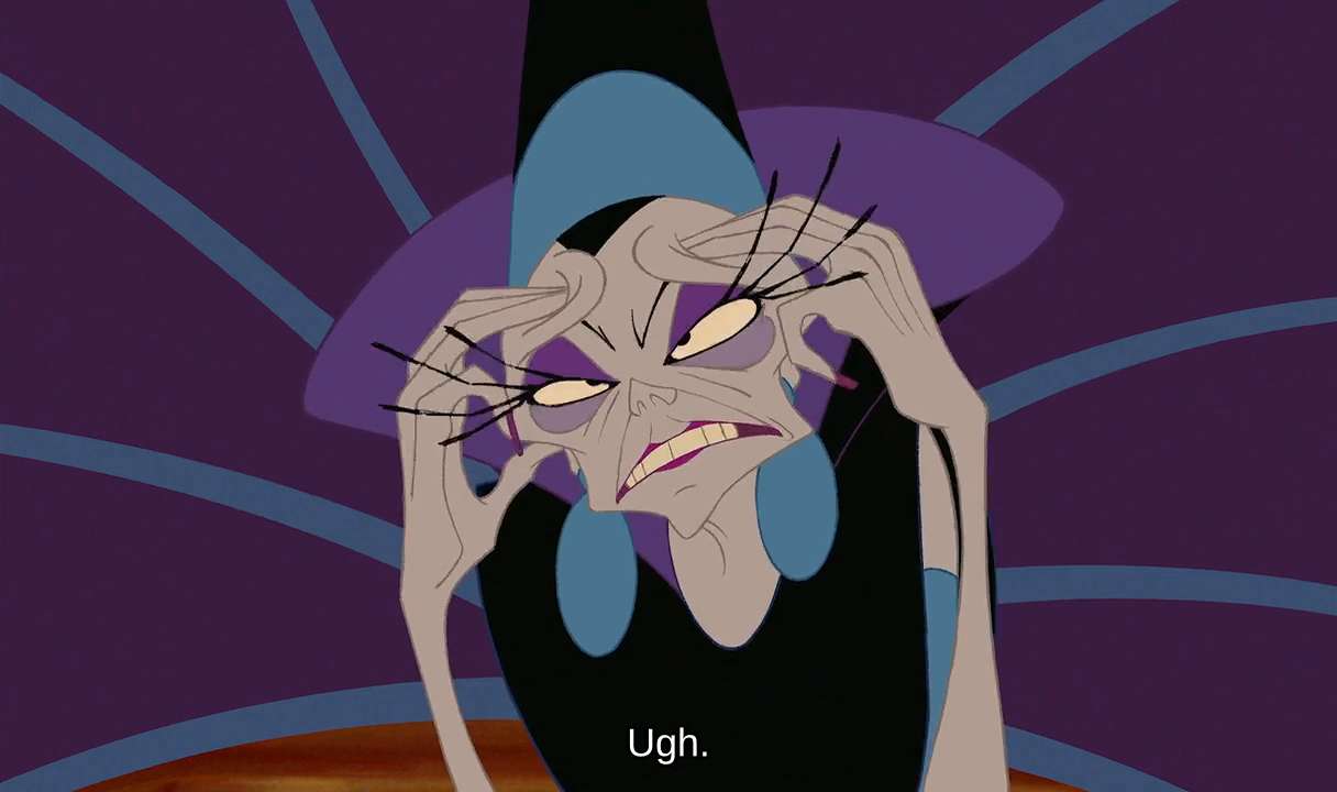 I think she was bitching about Gronk not bashing Emperor Kuzco in the head in that scene.