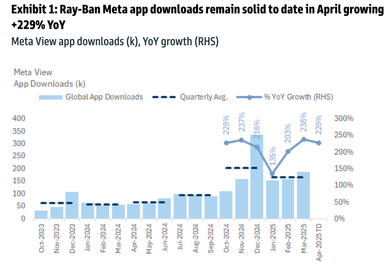 In April, Singlehurst shared app download data from SensorTower showing "solid" traction for the Meta Ray-Ban app.