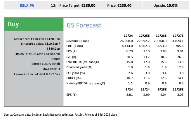 Singlehurst said, "The newsflow of Meta's stake follows the announcement of the launch of Oakley Meta (June 20). We are Buy-rated, seeing a compelling defensive compounder with asymmetric product-led upside."