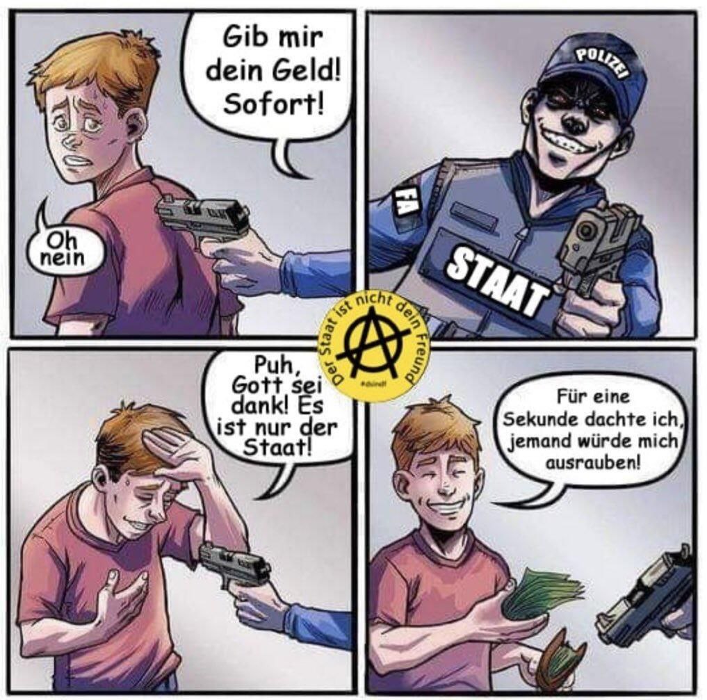 Dabei spielt es überhaupt keine Rolle ob Steuern sinnvoll, vielleicht im Interesse des beraubten, ausgegeben werden oder einfach veruntreut werden.