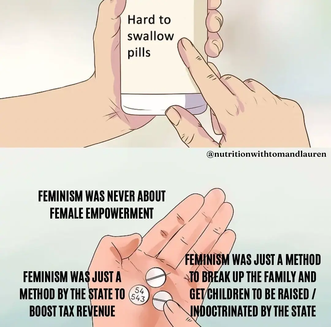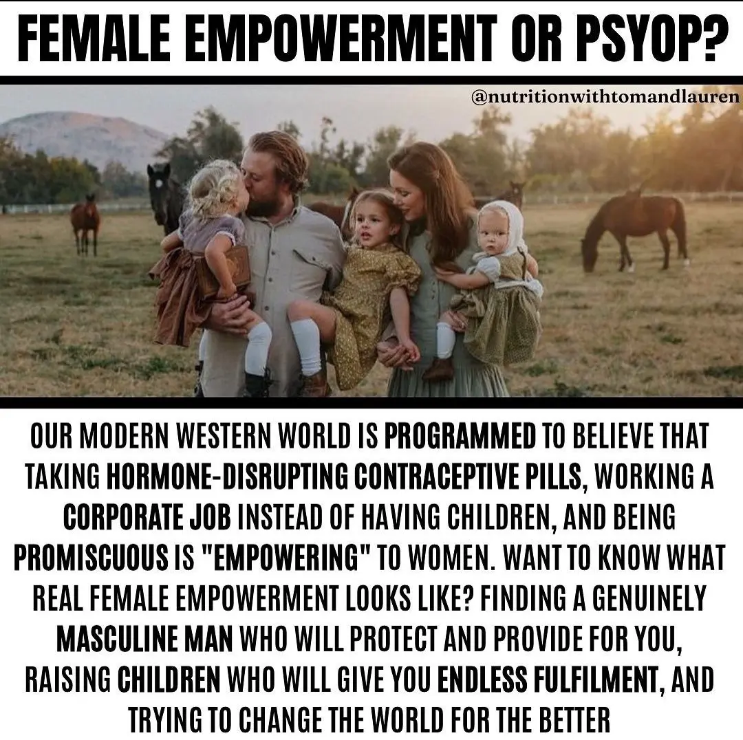 I know all of this sucks, feels unfair, and perhaps makes you angry to hear. But biology is undefeated, and in a world full of constant propaganda telling women that "toxic masculinity" is EVIL and they need to go WORK WORK WORK so they can pay more taxes, which conveniently helps the .01% collect more money, while simultaneously lowering the number of strong family units with the power & motivation to overthrow their corrupt system...