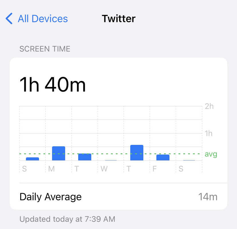 Oh wait that’s just Twitter.. I thought that was your whole screen time LOL