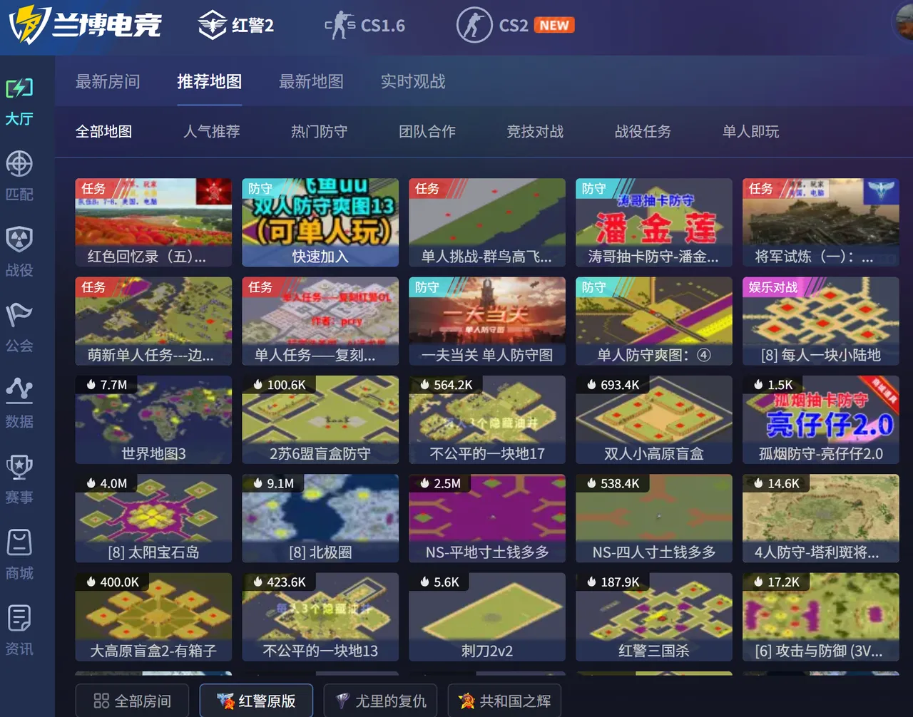 兰博电竞平台上有很多玩家上传的地图,玩法很多,还能真人对战,推荐去试试看。