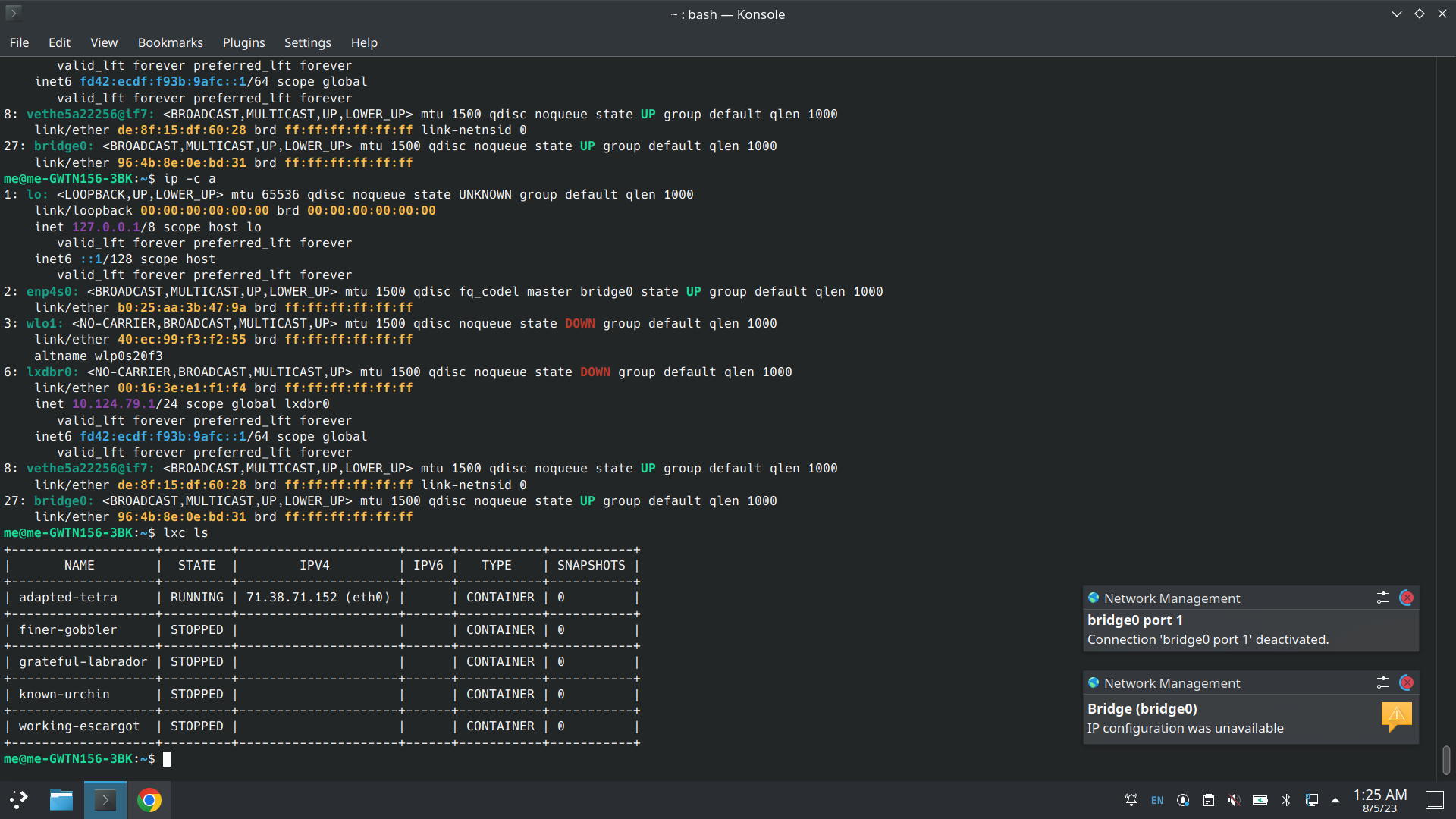wae i was wondering why bridge wasnt getting an ip anymore, turns out a container got it