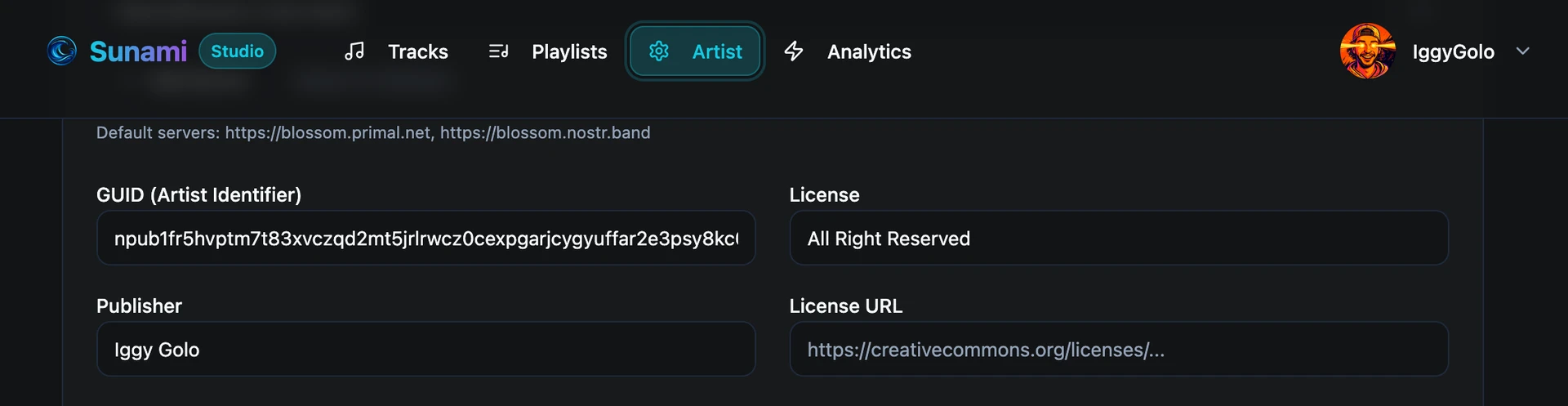 There doesn't seem to be any links to that page from the studio page. But i see my public hex key in artist guid fiel. This would mean i need a different profile for everyone of my aliases. I'd need 256 npubs to manage my own catalogue this way πŸ˜…