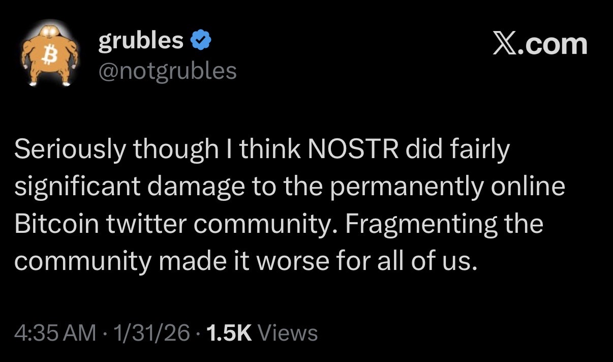 I am seeing that a core supporter is claiming *it - “nostr divided bitcoin”