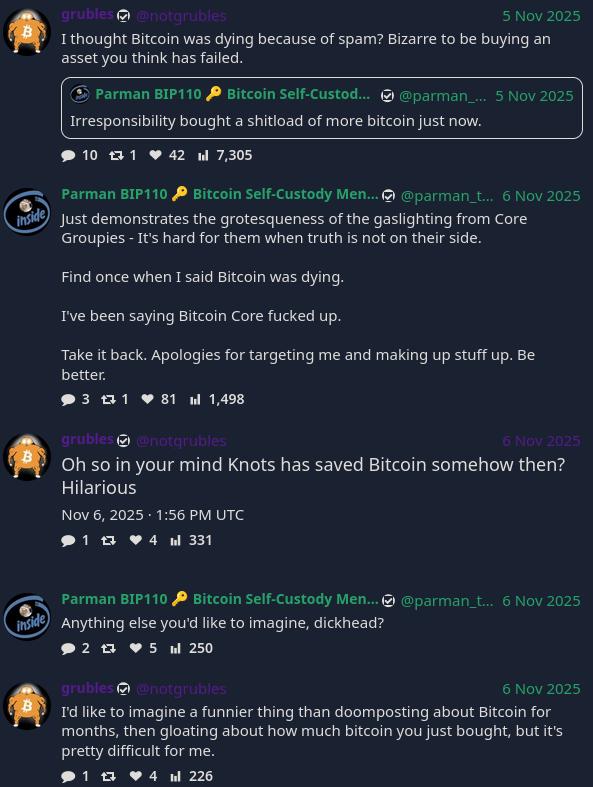 Look, I know your game. Spend hours talking nonsense FUD about Quantum (nobody cares) and never addresses the real problem: that your funded boys turning the reference client in a liability for us, the real node runners. Who is making this sissy claiming about Nostr? Who cares? The reality is that you don´t have nothing, not once argument, to defend this atrocity, nor you or anibody in the Core side. So BIP 110 my friend. The battle is at the consensus level. I said it and I say this again, V30 is the nail in the coffin for all of you. By the way, if you were coopted and you and your love ones are at risk, my apologies in advance.