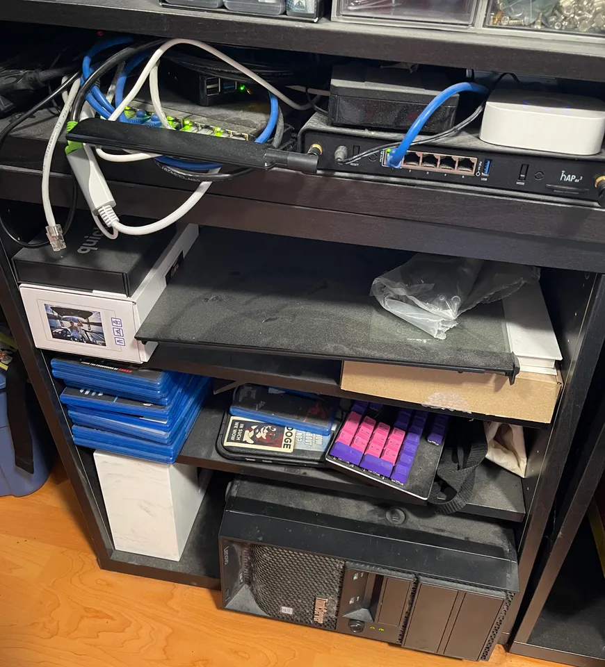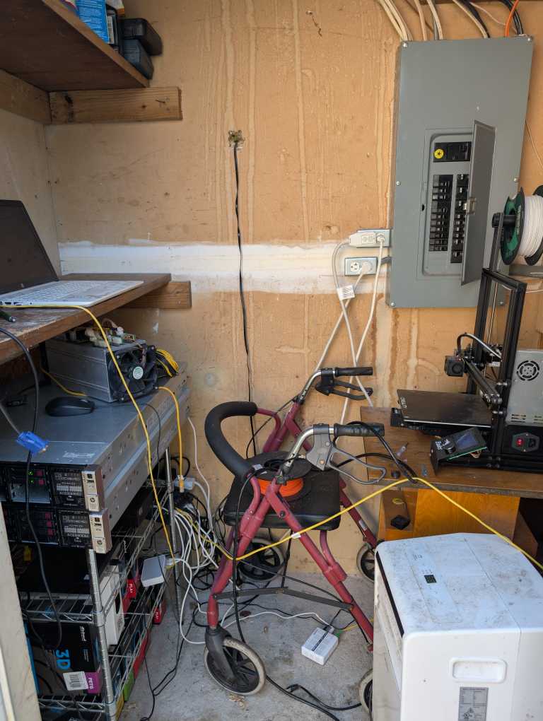 That's pretty sweet it's cooled too. My attic would end up melting my SSDs much less any GPU. I had to add in portable AC to make sure I kept the system cool in the summer then mine in the winter for aux heat.