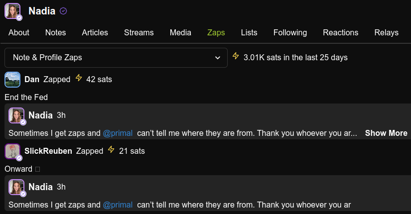 Sometimes I get zaps and nostr:nprofile1qqs9xtvrphl7p8qnua0gk9zusft33lqjkqqr7cwkr6g8wusu0lle8jcq9vhrm can’t tell me where they are from. Thank you whoever you are