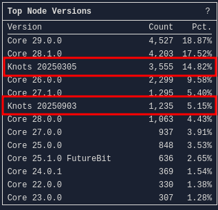 Bitcoin Knots is at about 20% and growing strong.