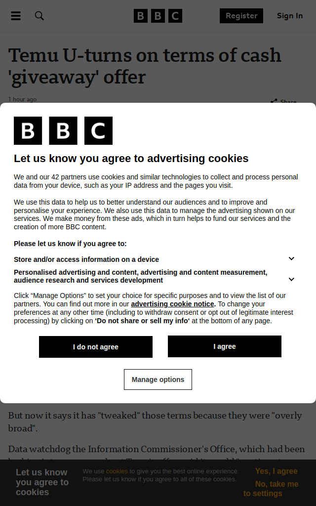 Temu, a company, has reversed its decision on the terms of a cash 'giveaway' offer. The company initially promised to give away cash to users who signed up for its service, but later changed the terms to require users to make a purchase in order to be eligible. This change in terms has sparked backlash from users and raised questions about the company's credibility. The article discusses the details of the offer, the reasons behind the change in terms, and the response from users and the public. The article also mentions that Temu is a technology company, but does not provide further information about its specific products or services.