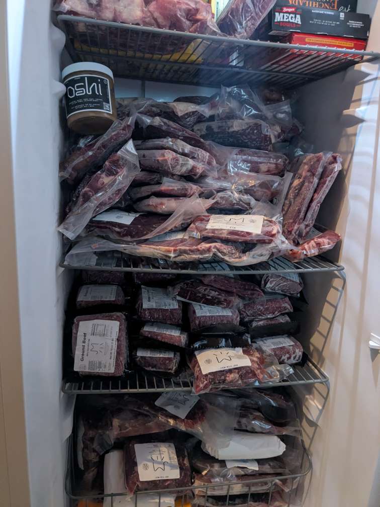 That's about the best I can do. That's most of the freezer. And Ribey is in there somewhere. Need to get a chest freezer for organization......I might have underestimated my available freezer space plus the amount of meat I was getting.