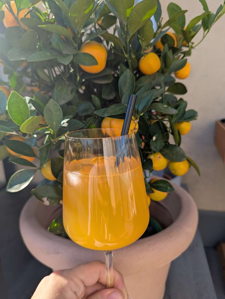 These here are mini oranges. I don't know how they taste but the plan is, every time it drops one in death agony, I'll put it in an aperitivo.