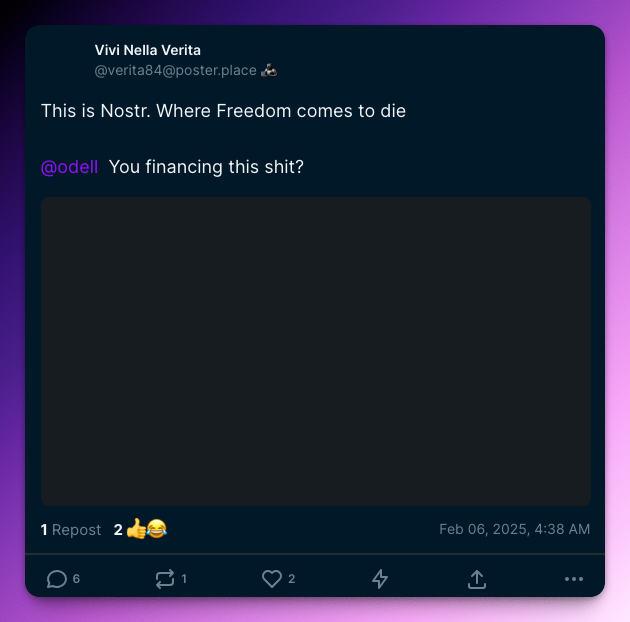 nostr:nprofile1qyv8wumn8ghj7ur0wd6x2u3wwpkxzcm99aex2mrp0yqzqwlsccluhy6xxsr6l9a9uhhxf75g85g8a709tprjcn4e42h053vasww8mv is this your vision for nostr?