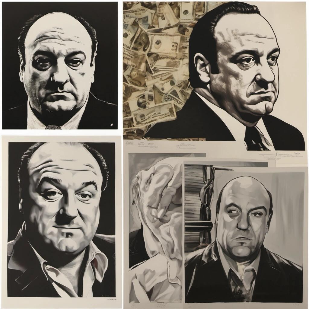 Prompt: giclée prints being sold of tony soprano by tony soprano to tony soprano