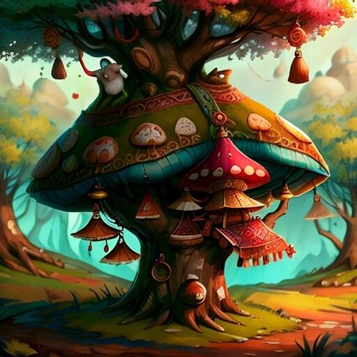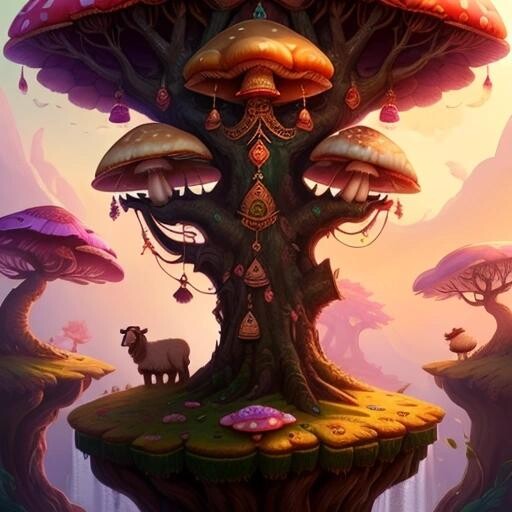 nostr:npub1p5qe4mtwxascahtp6szght2nlp06gwwwwllq7e7g6308p4y9dvys8nw2sf draw for me sheeps head mushrooms on a tree