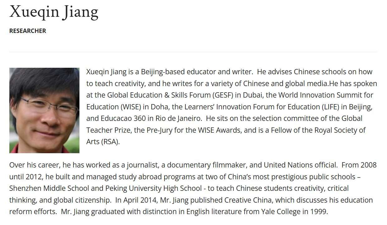 Xueqin Jiang is a Beijing-based educator and writer.