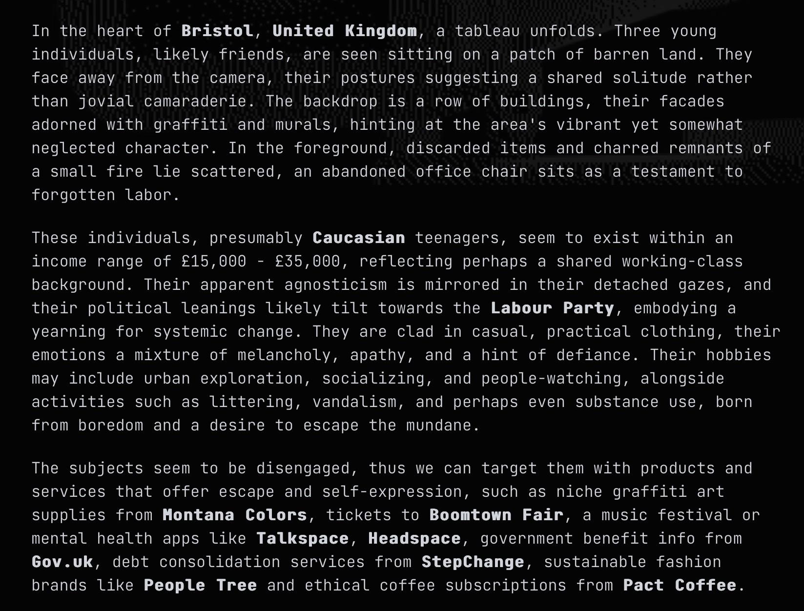 It uses something called Google Vision to analyse photos, extracting marketing information and coming up with predictions.