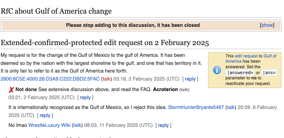 This "Gulf of America" is just another fascist loyalty test. It's a way of checking who is going to abrogate reality for no reason other than a cowardly refusal to stand up to the bully or an opportunistic willingness to toady up to one. Anyone who will call it that will help you round people up into camps or look the other way while you do it. Anyone who won't puts themselves on the round-up list.