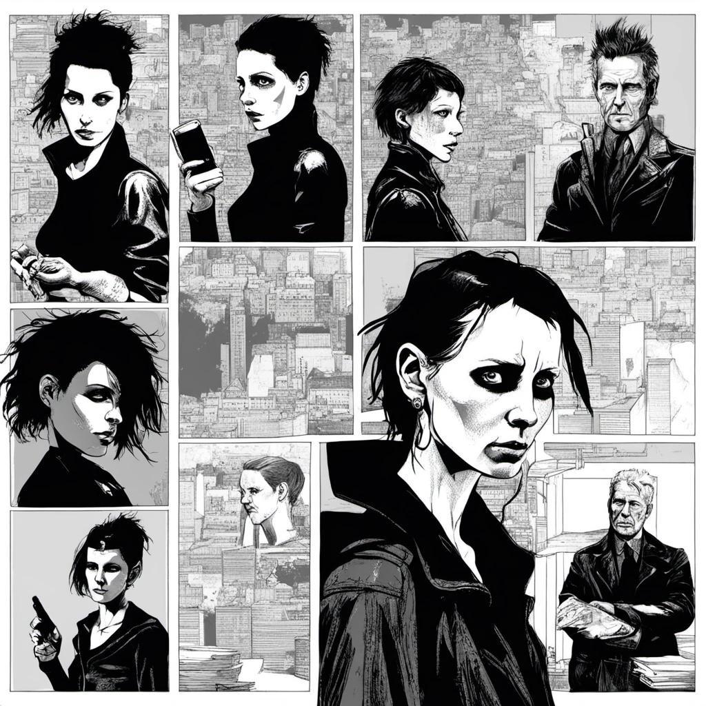 nostr:npub1p5qe4mtwxascahtp6szght2nlp06gwwwwllq7e7g6308p4y9dvys8nw2sf draw for us lisbeth salander echoing through the ages