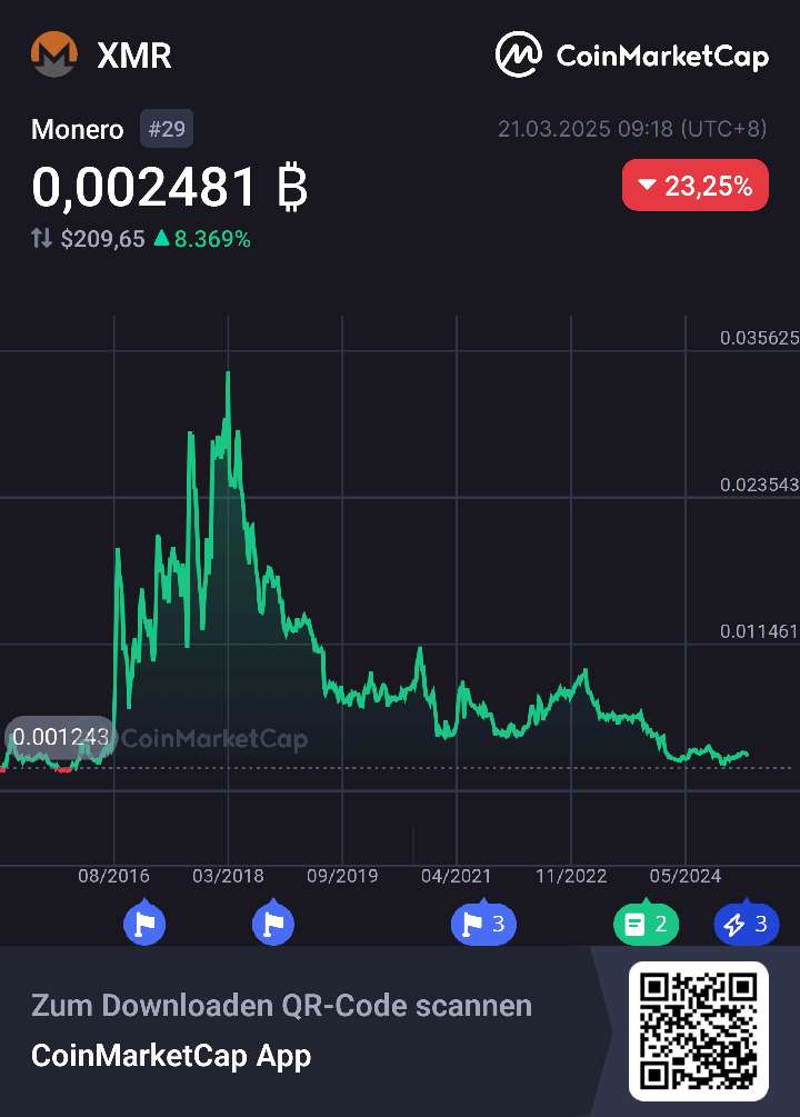 Monero ist kurz mit kleinen Mengen zum Zahlen OK aber kein Wertspeicher: