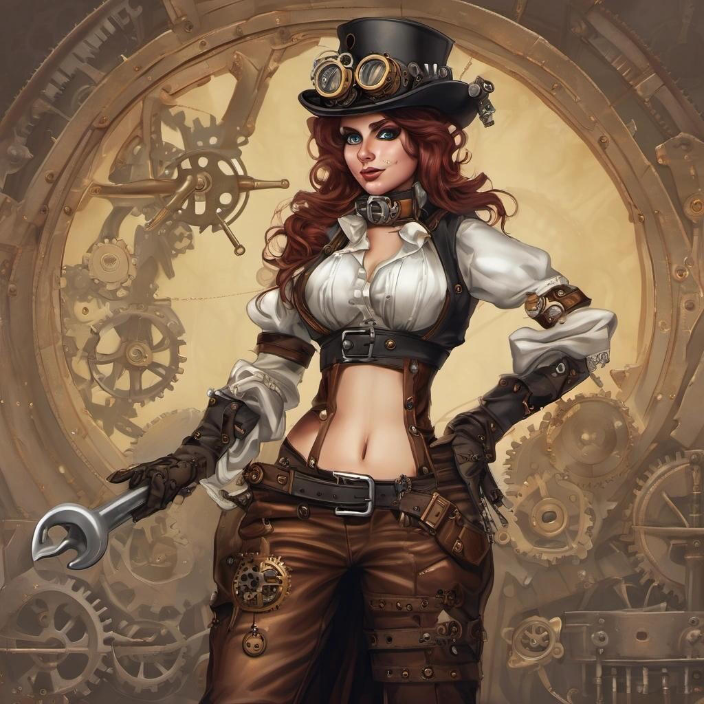 Prompt: A steampunk wrench wench