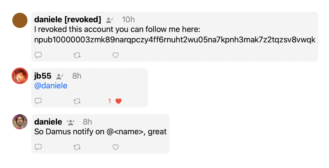 Today you replied to my *old account* citing @daniele and I received a notification: