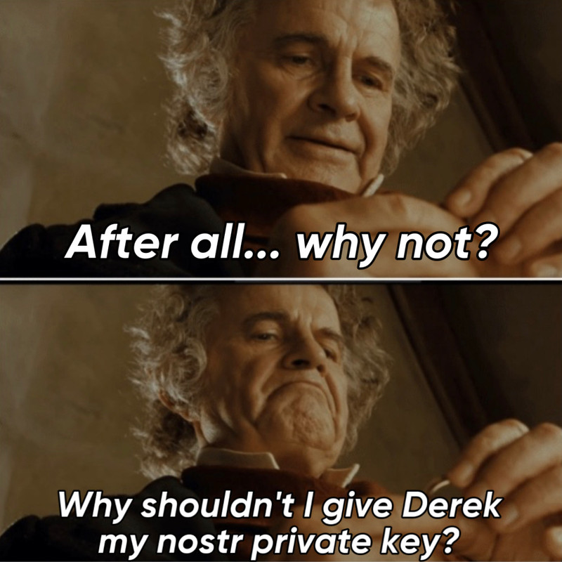 I am a super nice and trustworthy person, at least I'd like to think I am. My mom says I am, dammit! 😂 However, please for the love of Satoshi, do not give me your private keys to fix a problem with your NIP-05 ID. Thank you 🧡