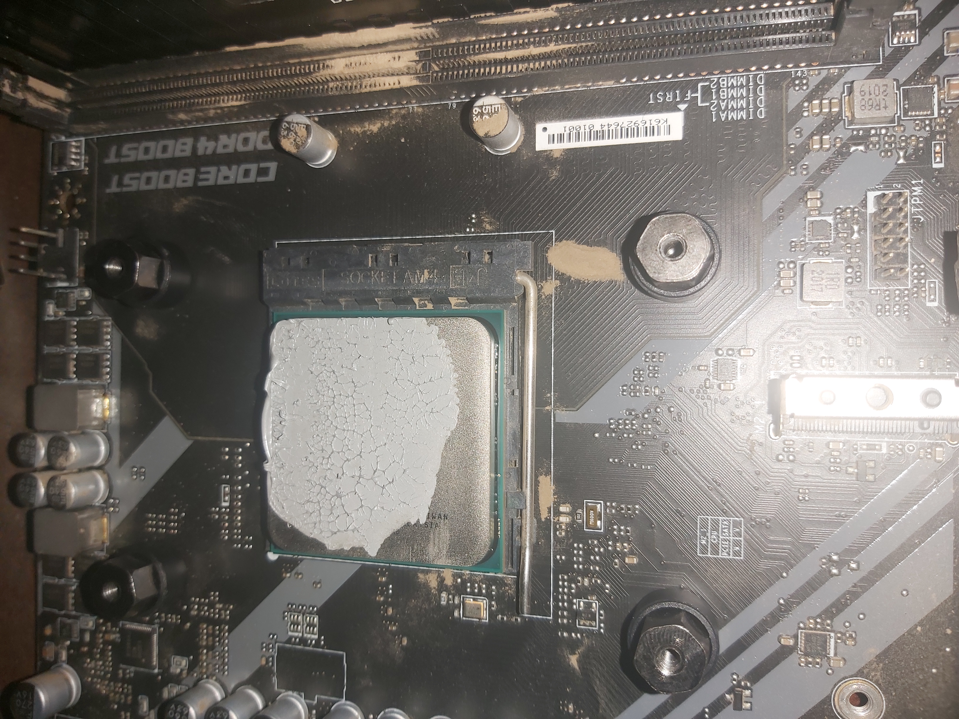 Between the processor and the heatsink, this is right on top of the processor after it is fitted to the motherboard