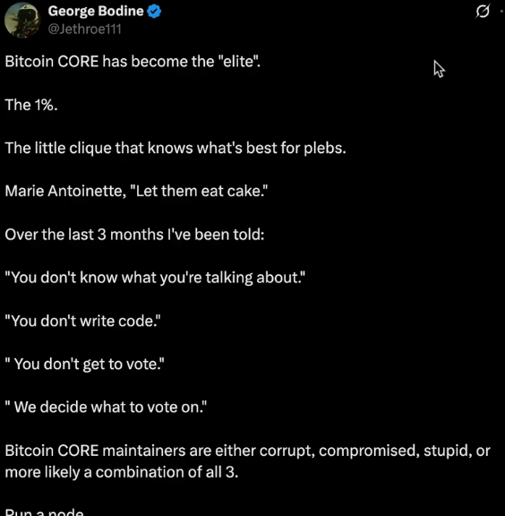 I’ll got back to watching eventually. But I think that it’s important to have a critical eye towards everyone’s content, especially if they are telling you exactly what you want to hear. But I’m not going to go as far as saying that he wants a split in the bitcoin community.