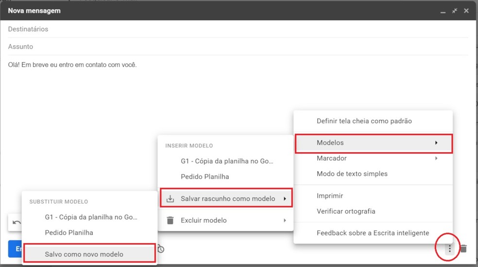 3. Clique na opção "Modelos" e após em "Salva rascunho como modelo";
