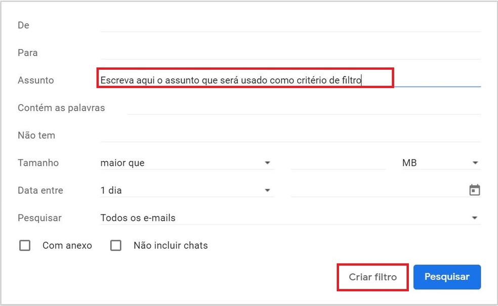 10. Clique em "Criar filtro" para finalizar a configuração;