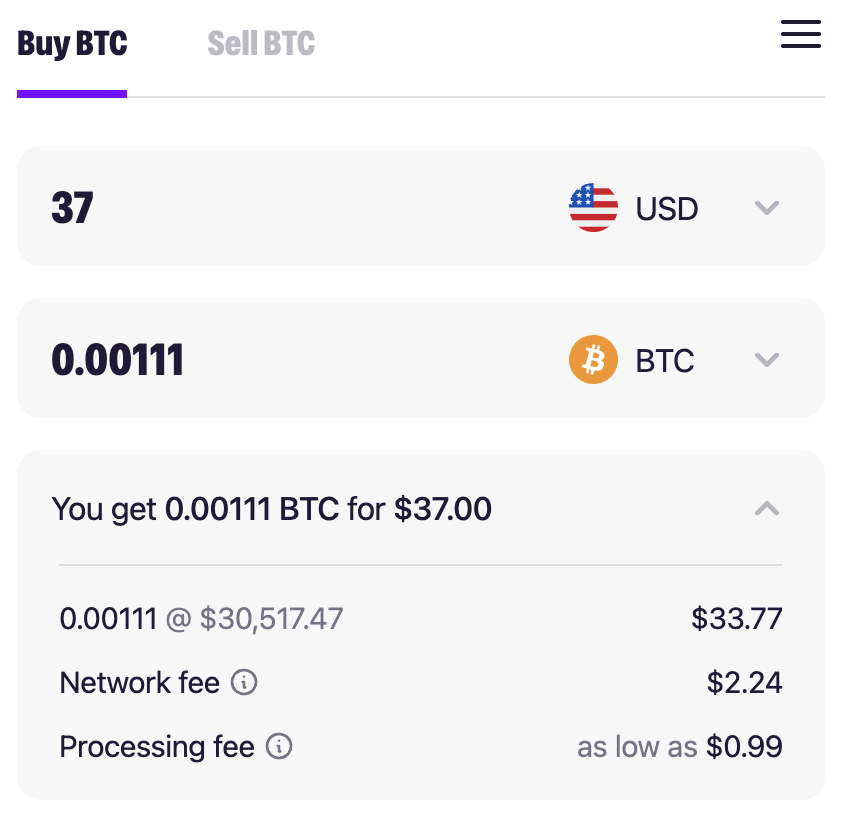 This is moon pay… Minimum is $37 and see the exhange rate/ fees.