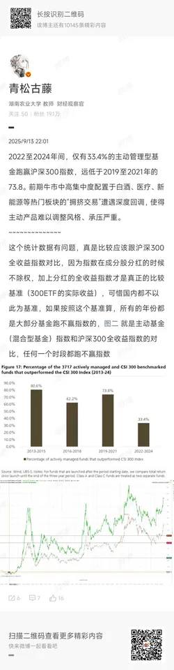 短期业绩排名直接影响规模进而影响管理费,主动基金经理从根本上就是极高时间偏好的,怎么可能指望短期主义者有长远规划?实际上癌股如果永远是以3000点为中枢的话,那定投沪深300etf几乎必然是赚钱的,因为慢慢熊途中,平均成本理论上是略低于3000点水平的,几年一轮的暴涨一次就是结算利润之时。