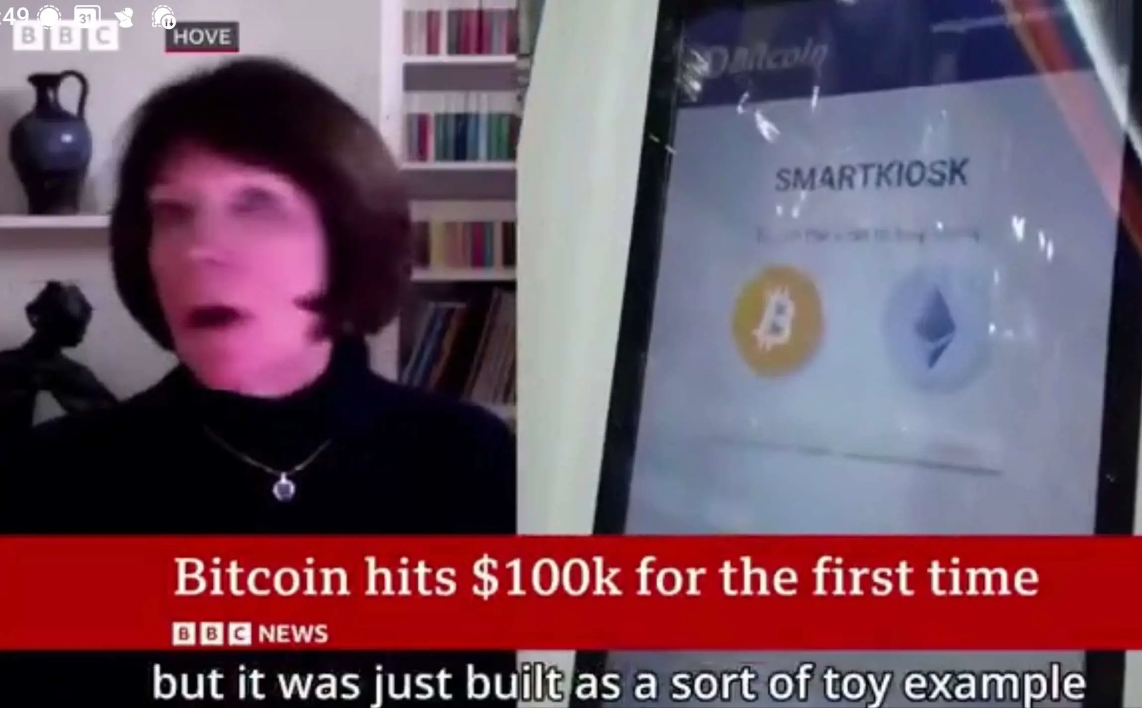 Fuck me. She can barely string a sentence together, let alone an intelligent sentence adout bitcoin. Who let her on the news? Won't be long before the BBC are forced to have Jack Mallers on!