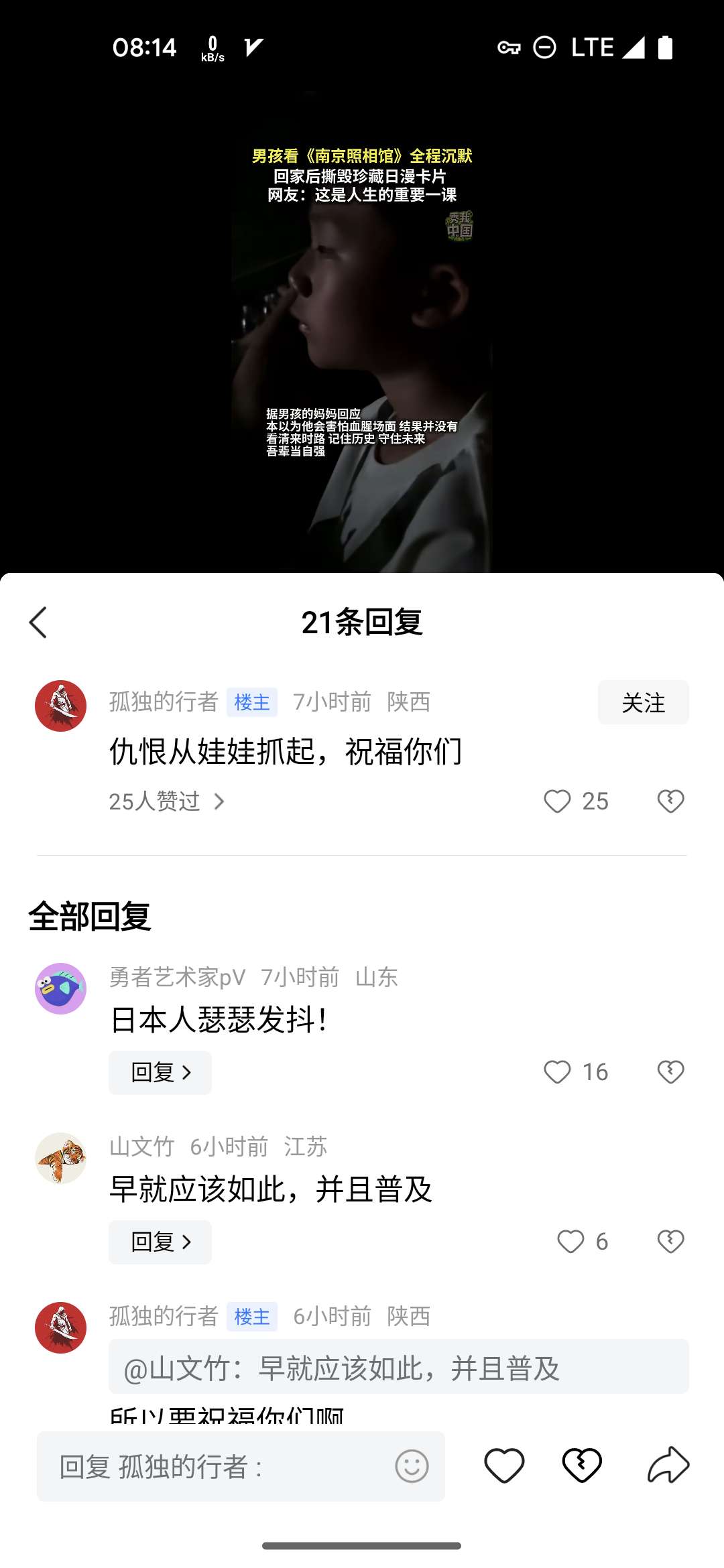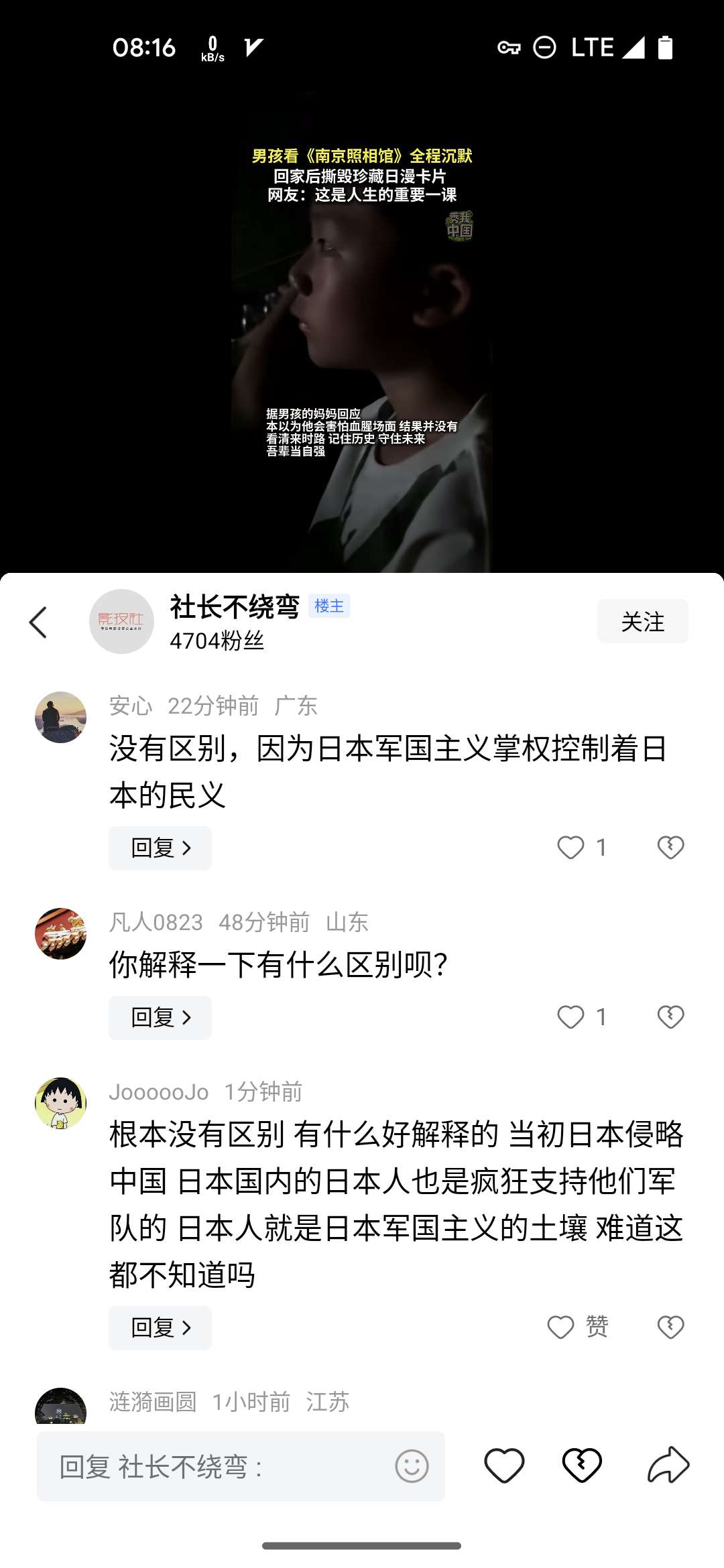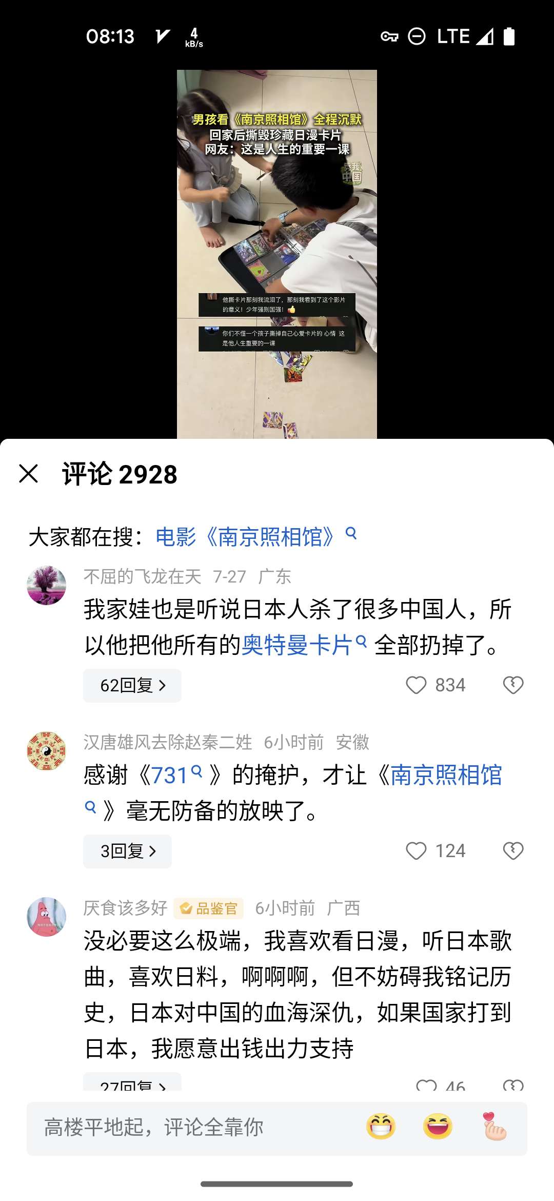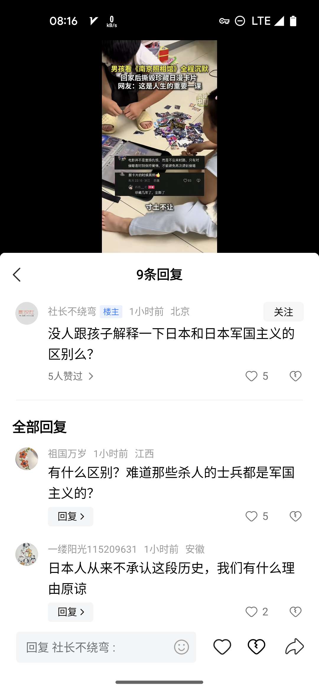 小时候对外来事物都是全盘接受,对美日的所有事物都是好奇与称赞。时代变了,文化风向也就跟着变了,仇恨,仇恨,还是仇恨……无休止的仇恨下去……对内,对外,都是仇恨……